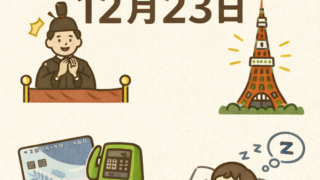 今日は何の日?12月23日12月23日は、祝日として親しまれてきた歴史を持ちつつ、暮らしや健康に関わる記念日もいくつか重なっています。年末の慌ただしさの中で、少し立ち止まって振り返りたくなる一日です。1. 天皇誕生日(※2018年まで)12...