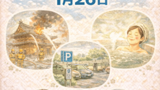 今日は何の日?1月26日1月26日は、文化を守ること・暮らしの工夫・体をいたわることに目を向けた記念日がそろう一日です。寒さが続く時期だからこそ、日々の安心や健康について考えるきっかけにもなります。1. 文化財防火デー1949年1月26日、...