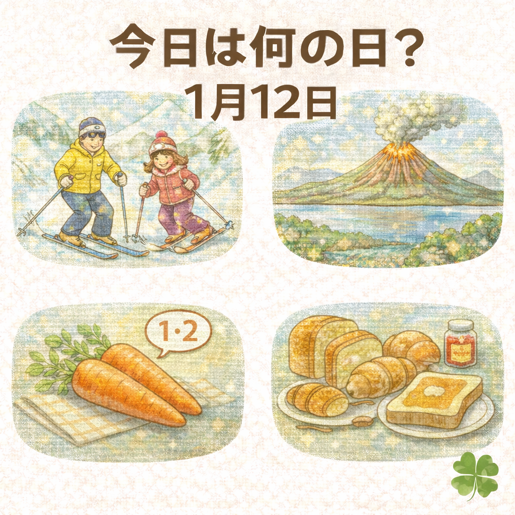 1月12日は、「スキーの日」「桜島の日」「いい人参の日」「パンの日」など、
